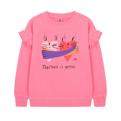Jelly Mallow Together Pigment Ruffled Sweatshirt PINK