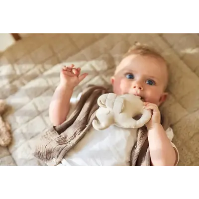 Deze schattige rammelaar met ring maakt een vrolijk geluidje en is heerlijk om vast te houden voor je kleintje. De geborduurde vlekjes, de oren met geruite print en de geborduurde ogen maken het ontwerp extra lief. Het staartje in de vorm van een knoop en het Jollein label geven de rammelaar maken deze rammelaar extra interessant voor je mini. Perfect voor het ontwikkelen van de zintuigen van je baby!