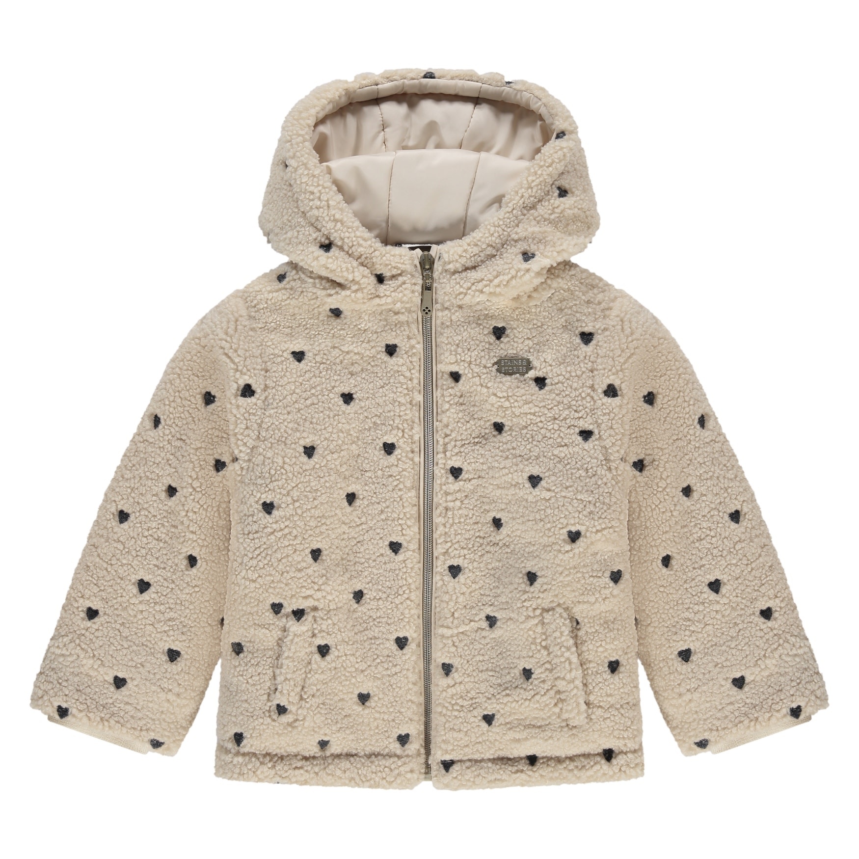 Stains and Stories girls winter teddy jacket beige