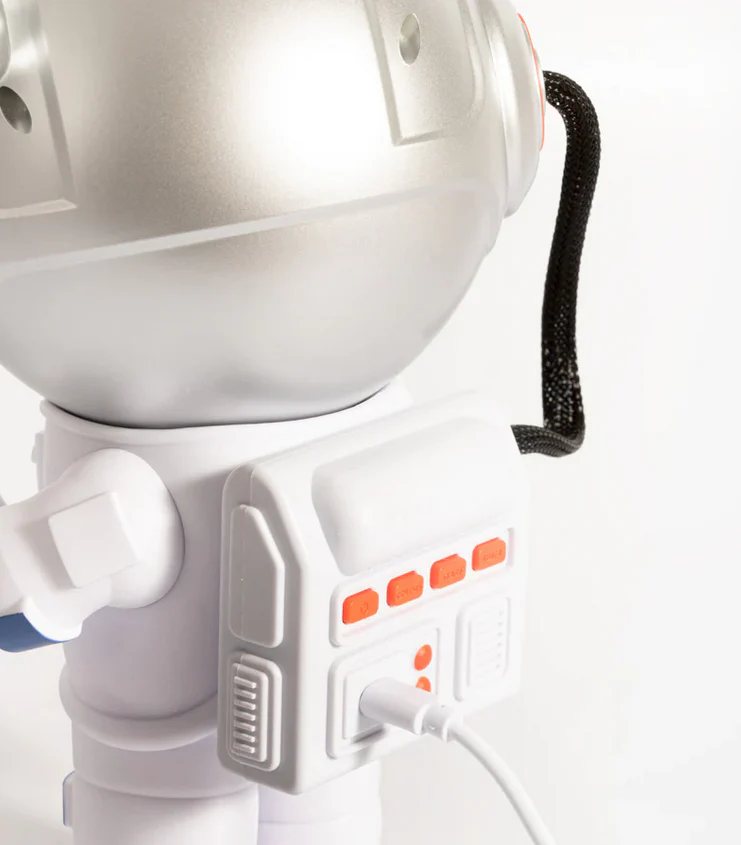Het hoofd van de astronaut kan 360° draaien en kan op afstand worden bediend met de afstandsbediening. Het extraatje: je kunt een timer instellen zodat de Stellar lamp zichzelf uitschakelt.