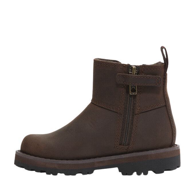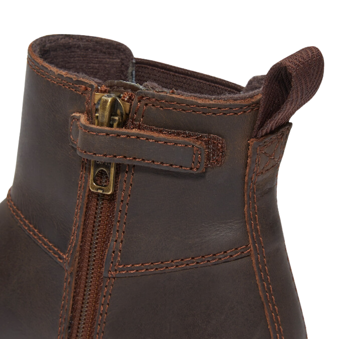 Dankzij de treklus en de ritssluiting aan de zijkant kun je ze gemakkelijk aan- en uittrekken. De 'Does it Fit?'-inlegzool laat ouders weten wanneer het tijd is voor een nieuw paar. Het lichtgewicht OrthoLite®-voetbed zorgt voor comfort en de rubberen profielzool zorgt voor grip. Timberland ondersteunt de verantwoorde productie van leer via de Leather Working Group.